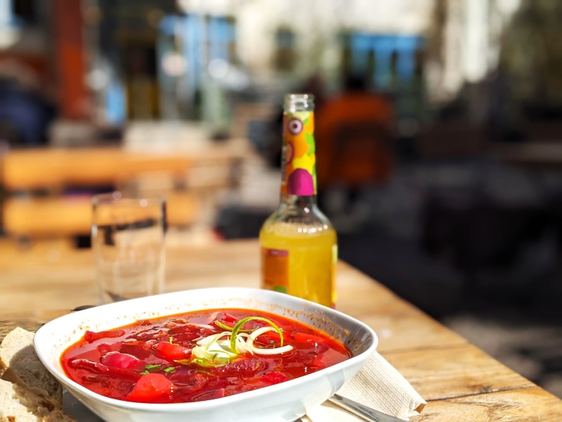 Unseren vegetarischen/veganen Mittagstisch plus ein Getränk nach Wahl (Softgetränk 0,33l Flasche oder Heißgetränk), bekommen Sie zu einem festen Preis von 10,50 EU